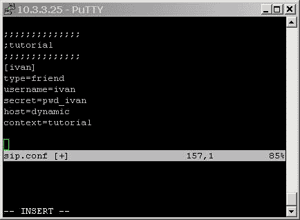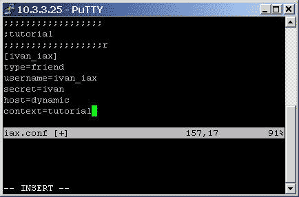 The user is ivan_iax and the type is friend again (can call and can be called). Put some secret whatever, dynamic IP for host and join the user to the tutorila context.
