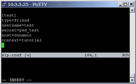 1. Go to /etc/asterisk at your asterisk server. Open sip.conf and register the following test user.