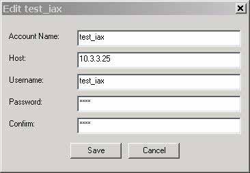 The second IAX user is test_iax. The password is the same as ‘secret’ in iax.conf and the host will be the IP address of your host.
