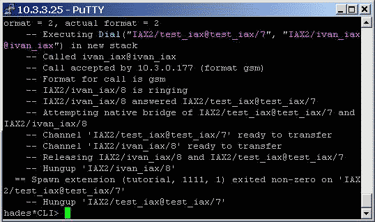 When we choose in iaxcomm user ‘test_iax’ and dial number 1111 here is what in CLI and on the phone appears: