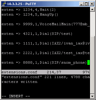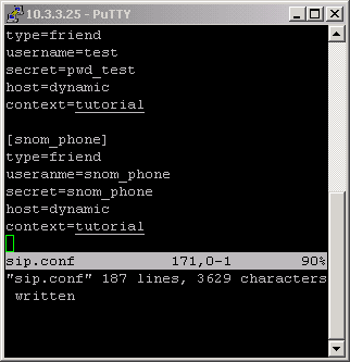 Now we will create a SIP user on Asterisk who will play the SNOM harphone therefore this user must be registered also at the phone’s site. We will also create an extension to dial the phone.