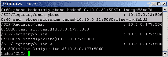 I create an extension 8888 that dials our snom phone after the phone is registered to the web site. And remember to reload Asterisk after the changes are made. Here is how you can check whether your user is registered at Asterisk. In CLI type ‘database show’. Here is what I see but remember this is after I registered the user to the local snom web site.