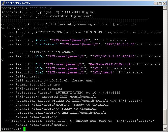 2. Screenshots of what you can see on the CLI of the Asterisk PBX