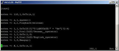 Now, lets go back to the GoToIf application in our extensions.conf file. So, when the caller enters the extension with this application - GoToIf will check whether the preferable language is German or not. If it is German the next executed extension will be the one with priority 2 which will connect the caller to the German_operator. If it is not German, the execution will continue with the extension with priority 4, which will connect the caller to the English_operator.