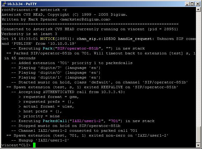 2. Screenshots of what you can see on the CLI of the Asterisk PBX