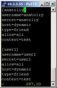 Type=friend means that this user can make and receive calls. Host=dynamic means that the IP is not static but dynamic through a DHCP server. Allow=all means that the line which this user will use, could support all audio codecs. Context=test - this shows that this user is working with the extensions in this context of the configuration file extensions.conf.