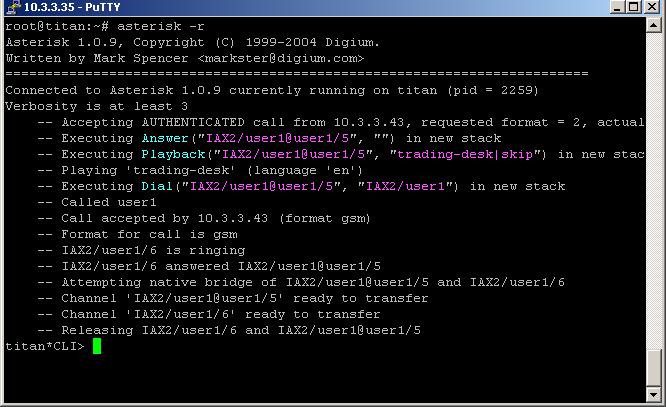 2. Screenshots of what you can see on the CLI of the Asterisk PBX