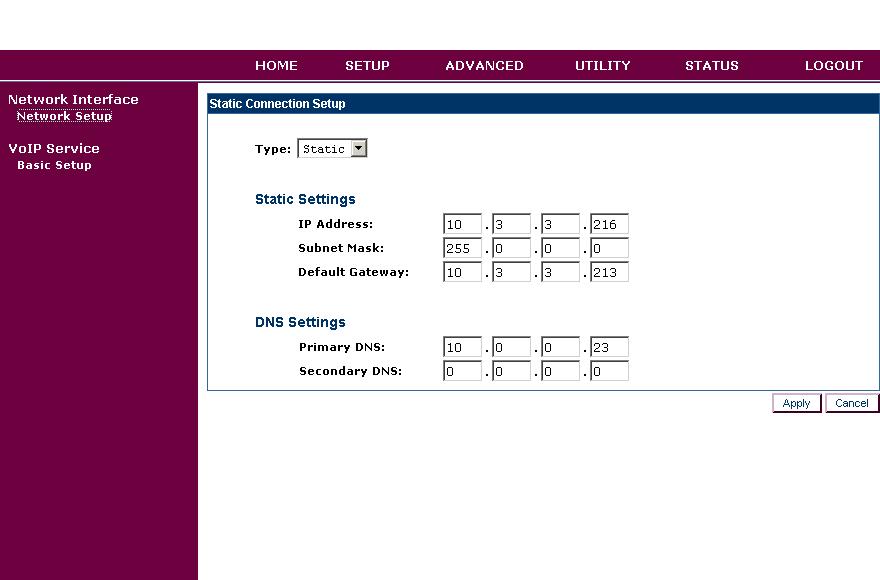Go to the Networking section and set your IP address, subnet mask, default gateway and DNS server IP address.