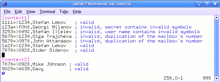 mailbox_number => mailbox_secret,User Name,somebody@mail.com,somebody@pager.com, keyword1=data1|keyword2=data2|keyword3=data3|keyword4...If you don't specify options you don't have to put the ',' symbol. Here are some examples: